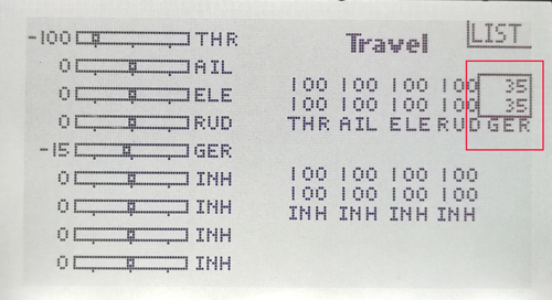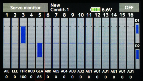 In order to achieve a 6-position switch, programmable mixing functions should be supported by your radio system. A common approach is to apply mixings on a 2-position switch (e.g. SwA) and a 3-position switch (e.g. SwB) and get 6 different position outputs on a certain channel (e.g. Gear or Flap). To make A3S3 read 6 states from the signal correctly, the pulse length of the output signal must meet the requirement of range in the following figure. In our examples, the ±85%, ±50%, ±15% of the servo travel are chosen as the set points. The result will be when SwA is in the [0] position, the output will change between -85%, -50% and -15% when you switch between the three positions of SwB, and when SwA is in the [1] position , the output will change between +15%, +50% and +85% when you switch between the three positions of SwB, as shown below.