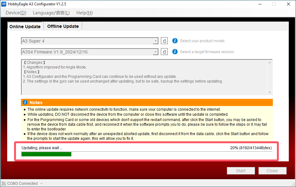 The update will start, please wait for the update to complete, DO NOT disconnect the device from the PC while updating.