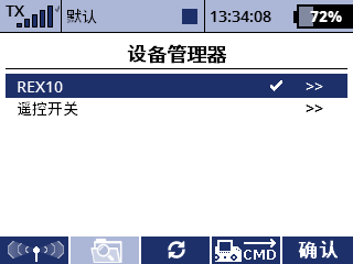 在遥控器的设备管理器菜单中,将接收机的E1或E2输出口设置为输出EX Bus,如下图: