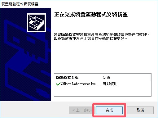 安裝會很快完成,點擊"完成"關閉安裝精靈: